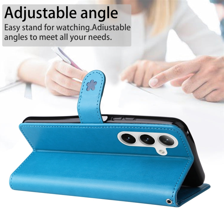 For Samsung Galaxy S25 / S24 5G Cat and Bee Embossed Flip Leather Phone Case(Blue)