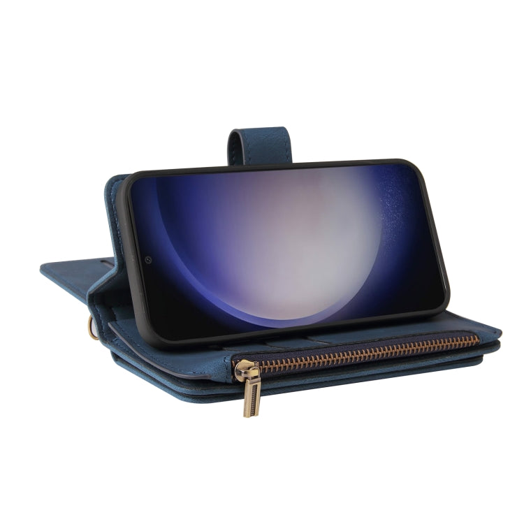 For Samsung Galaxy S25 / S24 5G Skin Feel Multi Card Slots Zipper Wallet Leather Phone Case(Blue)