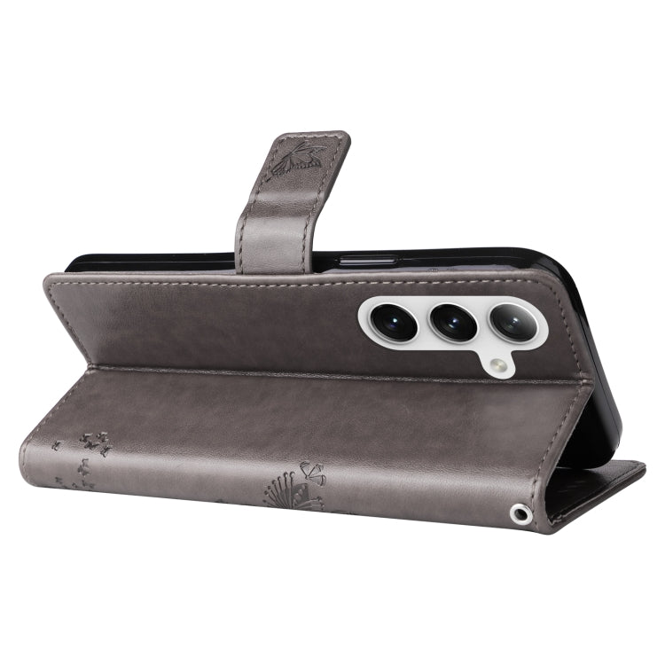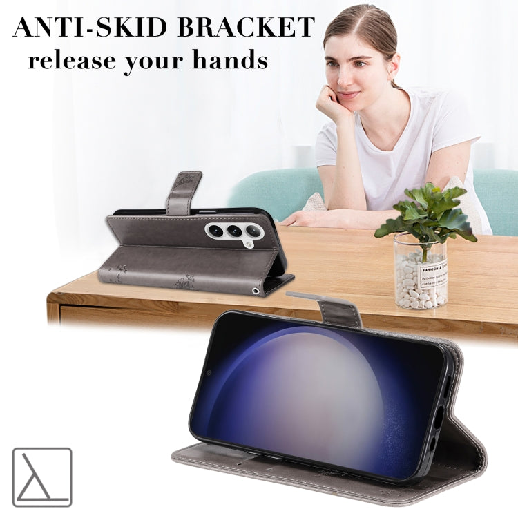 For Samsung Galaxy S25 / S24 5G Tree & Cat Embossed Pattern Flip Leather Phone Case(Grey)