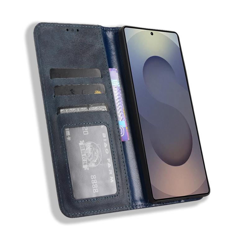 For Samsung Galaxy S25 Ultra 5G Magnetic Buckle Retro Texture Leather Phone Case(Blue)