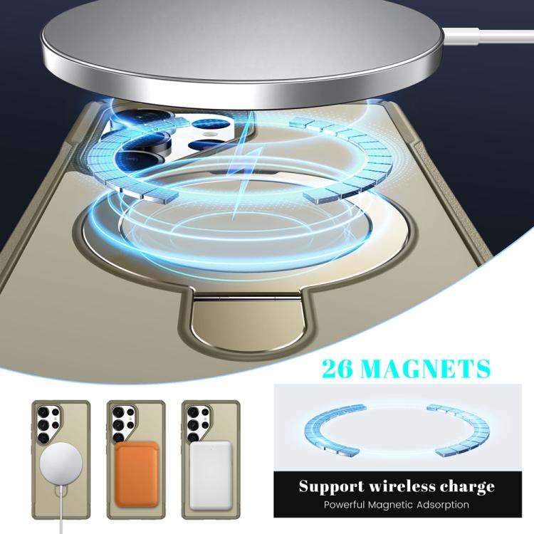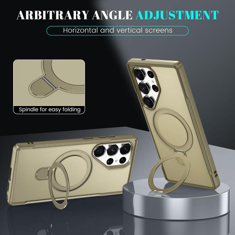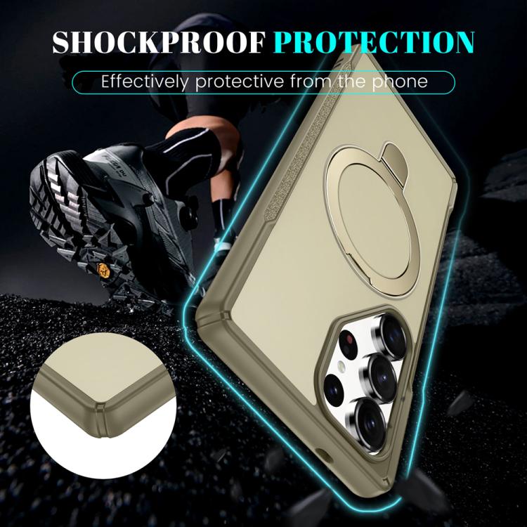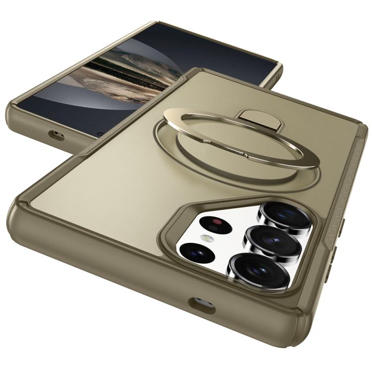 For Samsung Galaxy S25 Ultra 5G Skin Feel Magnetic Holder MagSafe Phone Case(Khaki)