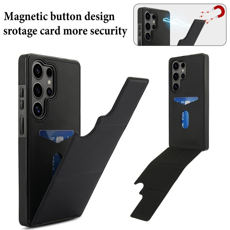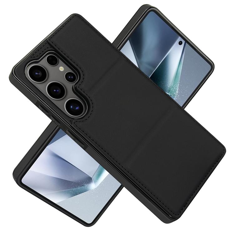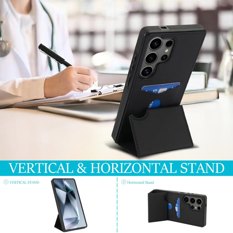 For Samsung Galaxy S25 Ultra 5G Tri-fold Holder Leather Phone Case with Card Slot(Black)