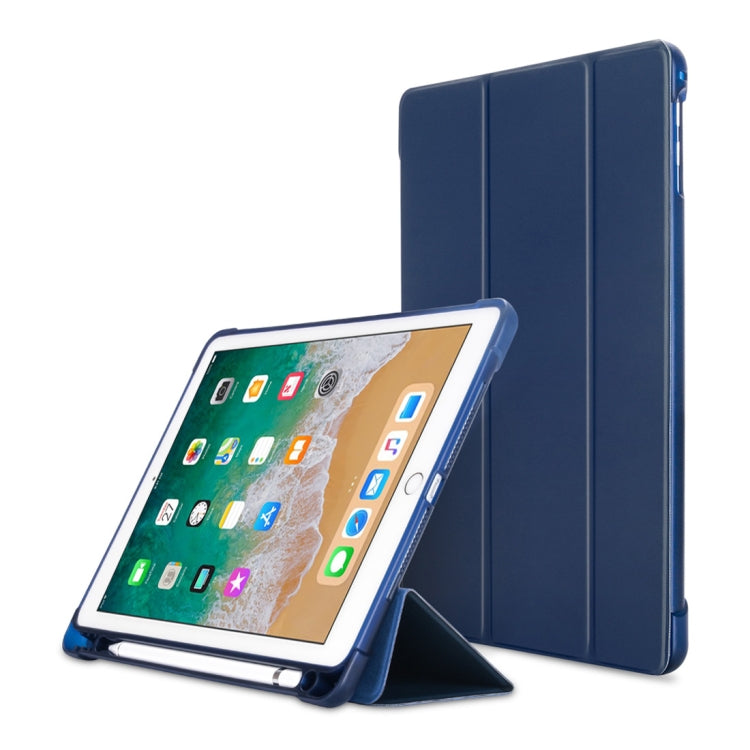 Litchi Texture Flip Leather Case for iPad 9.7(2017) / 9.7(2018)/ Air2 / Air, with Three-folding Holder & Pen Slots(Dark Blue)