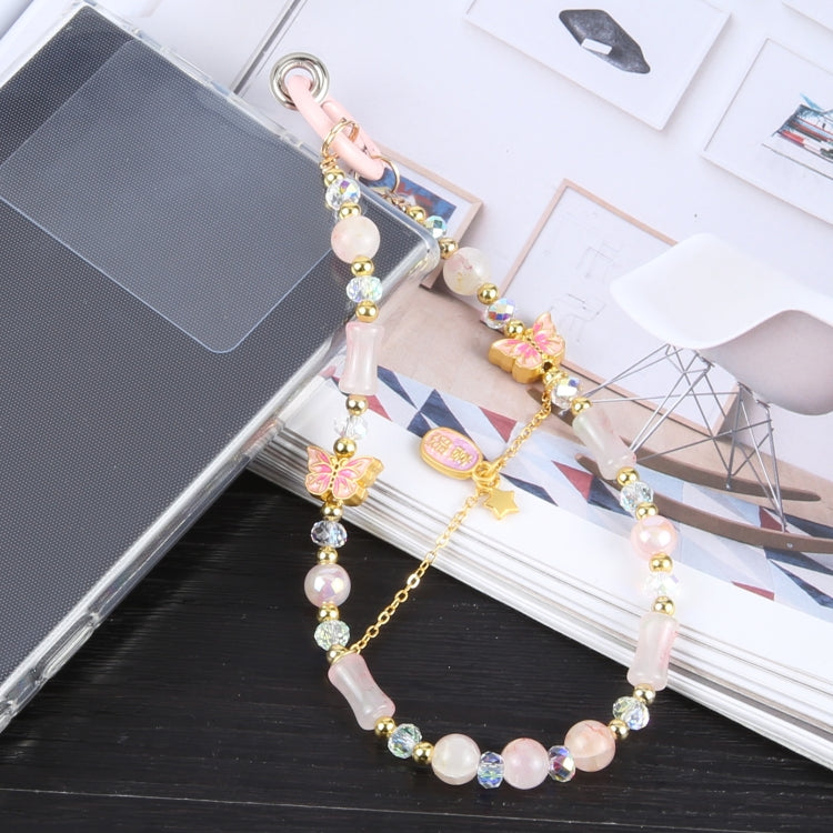 Mobile Phone Anti-lost Auspicious Bead Chain Short Lanyard(Pink Auspicious Star)