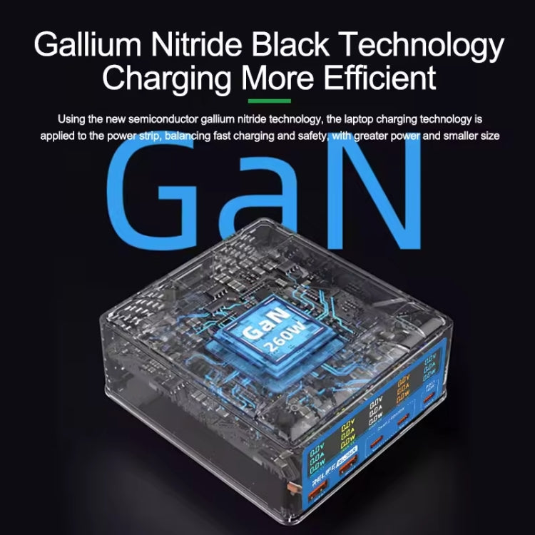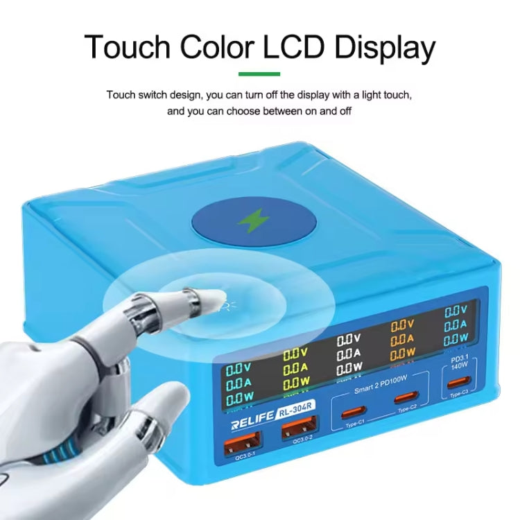 RELIFE RL-304R 5-Port 260W GaN Smart USB Fast Charger With 15W Wireless Chargind LCD Display(EU Plug)