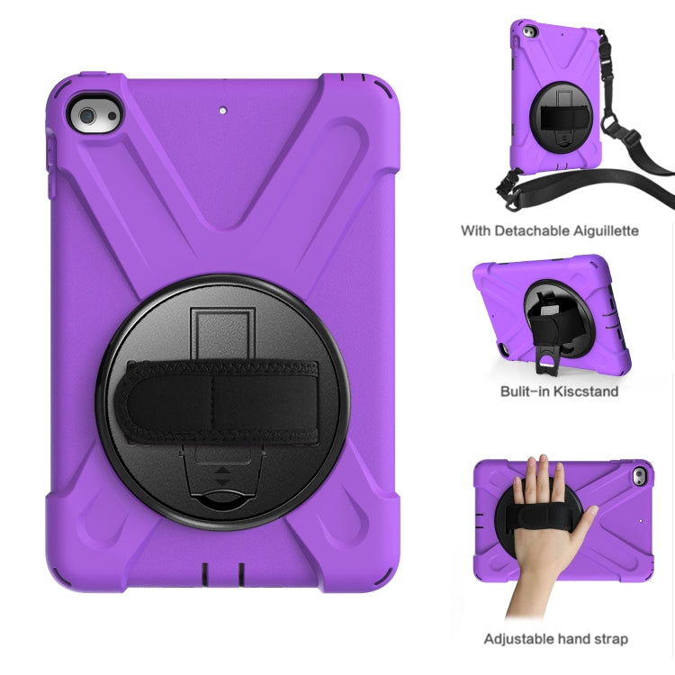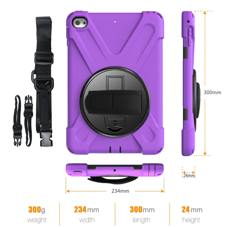 Shockproof Colorful Silicone + PC Protective Case with Holder & Shoulder Strap & Hand Strap For iPad Mini 4 / Mini (2019)(Purple)