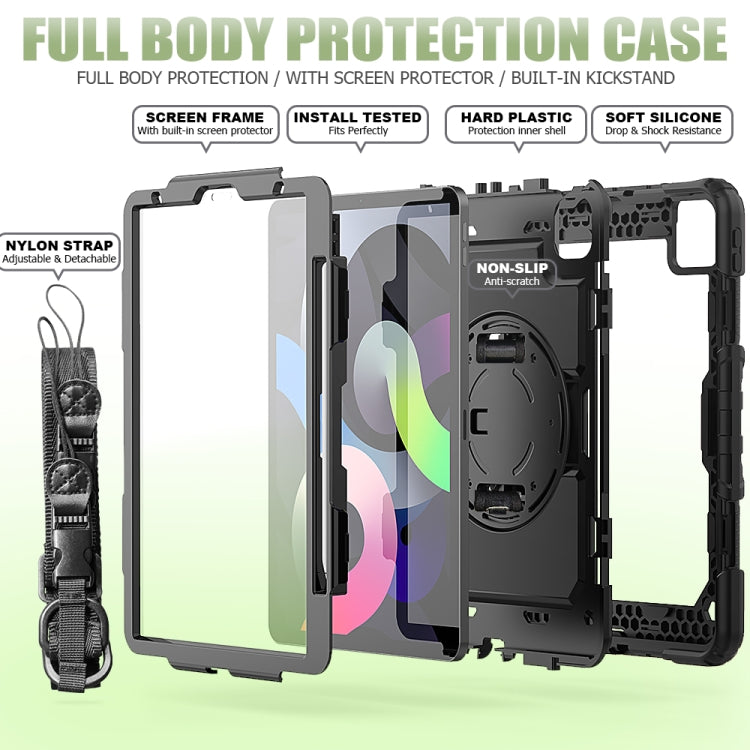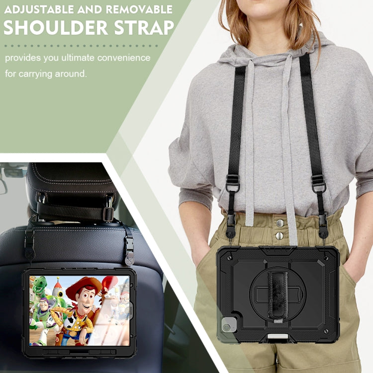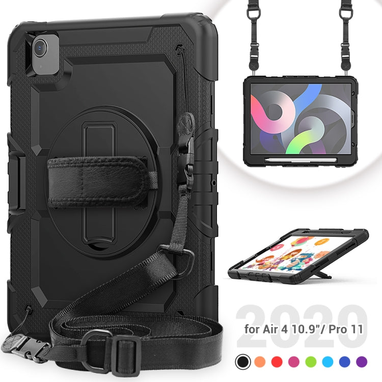 Shockproof Colorful Silicone + PC Protective Case with Holder & Shoulder Strap & Hand Strap & Pen Slot For iPad Air 2022 / 2020 10.9 (Black)