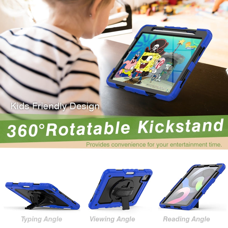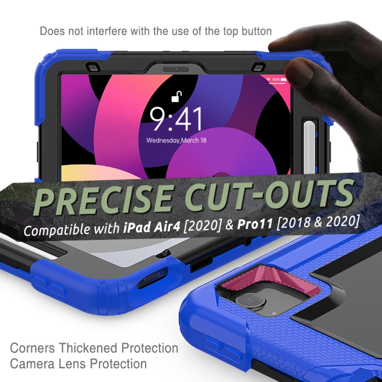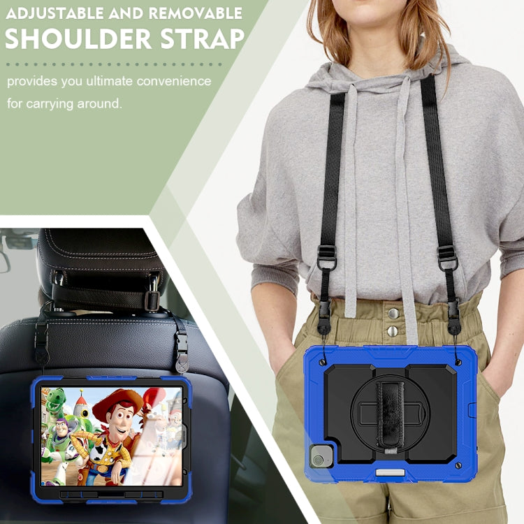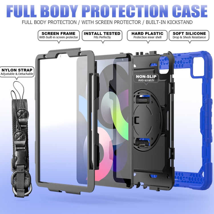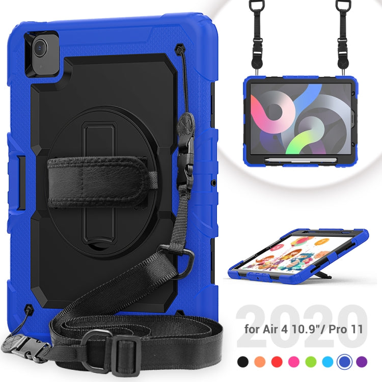Shockproof Colorful Silicone + PC Protective Case with Holder & Shoulder Strap & Hand Strap & Pen Slot For iPad Air 2022 / 2020 10.9 (Blue)