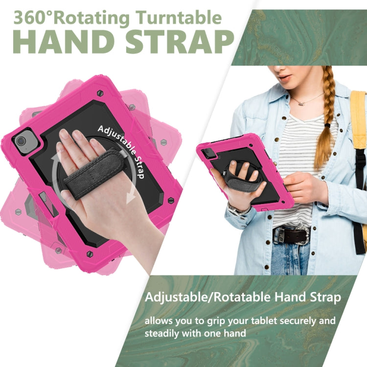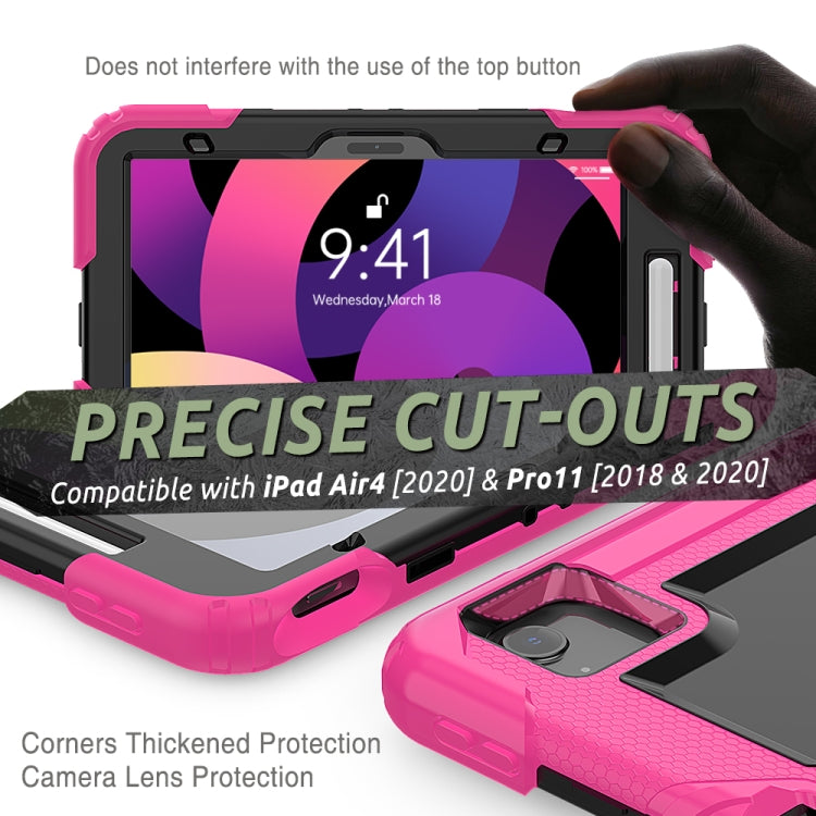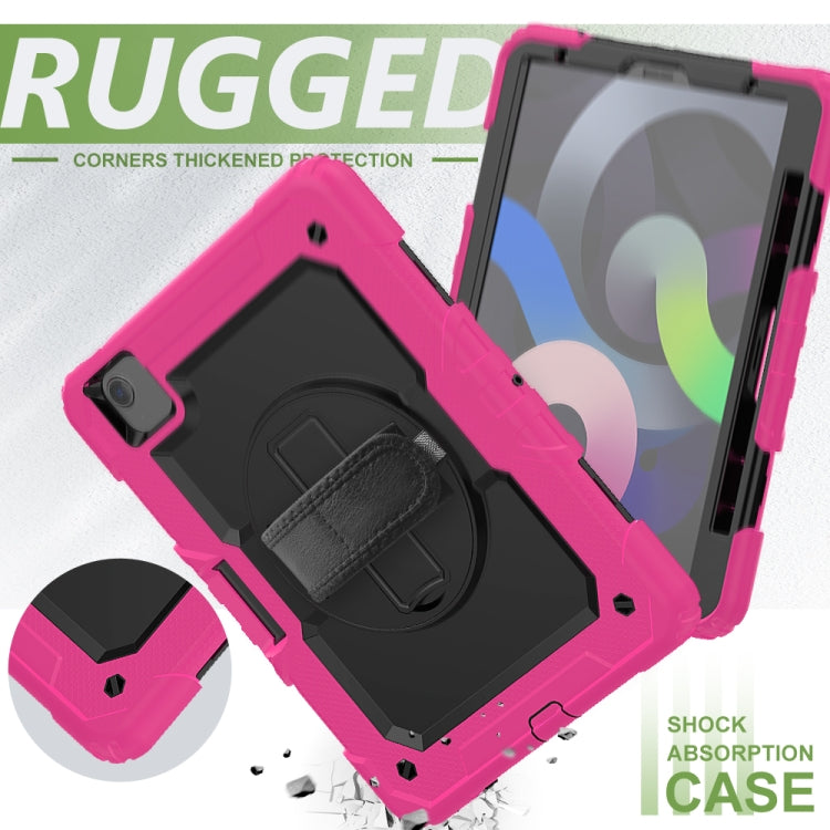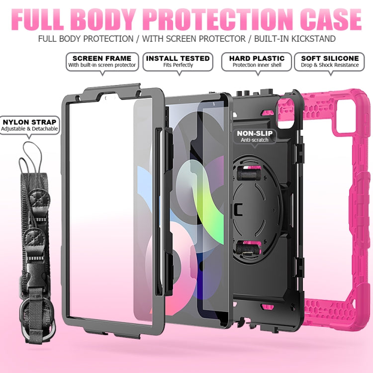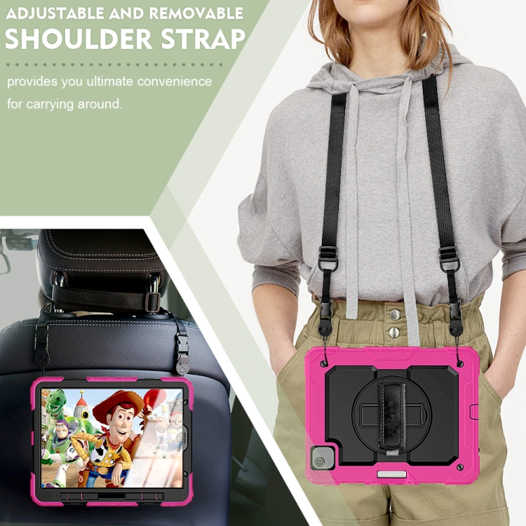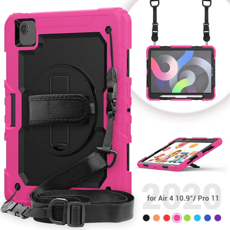 Shockproof Colorful Silicone + PC Protective Case with Holder & Shoulder Strap & Hand Strap & Pen Slot For iPad Air 2022 / 2020 10.9 (Rose Red)