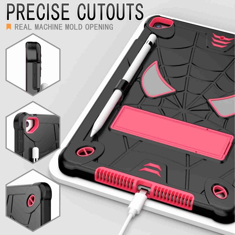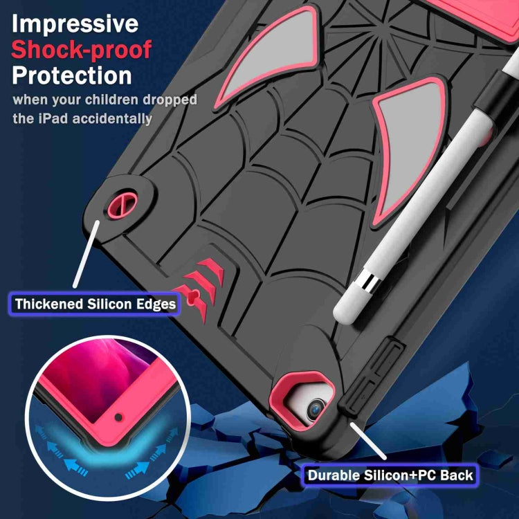 For iPad 10.2 2021 / 2020 / 2019 Spider Texture Silicone Hybrid PC Tablet Case with Shoulder Strap(Black + Rose Red)