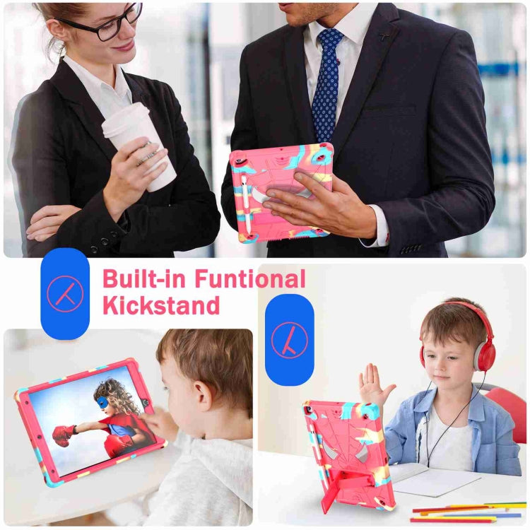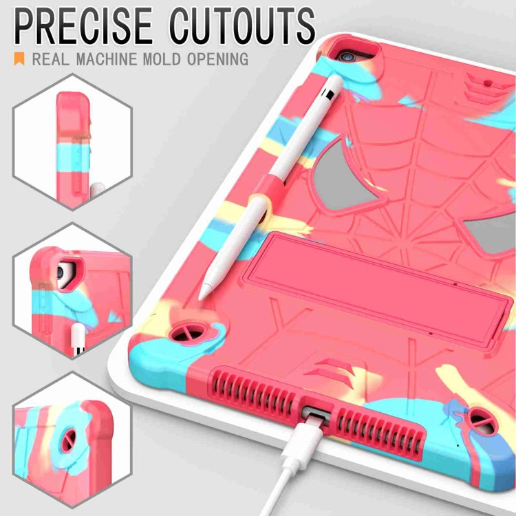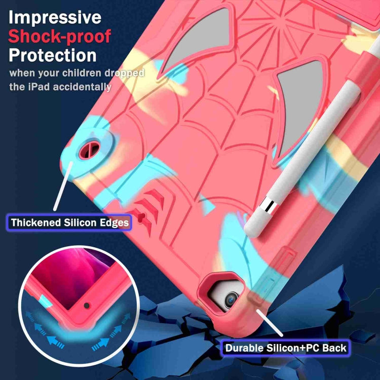 For iPad 10.2 2021 / 2020 / 2019 Spider Texture Silicone Hybrid PC Tablet Case with Shoulder Strap(Camouflage + Rose Red)