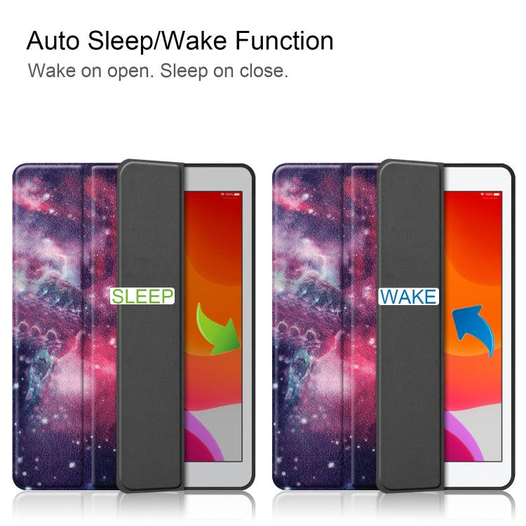 For iPad 10.2 2021 / 2020 / 2019 TPU Colored Drawing Horizontal Flip Leather Case with Three-folding Holder & Sleep / Wake-up Function(Silver Nebula)