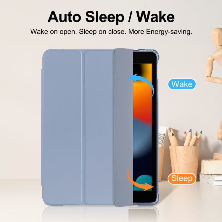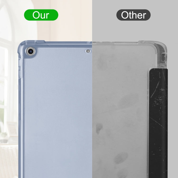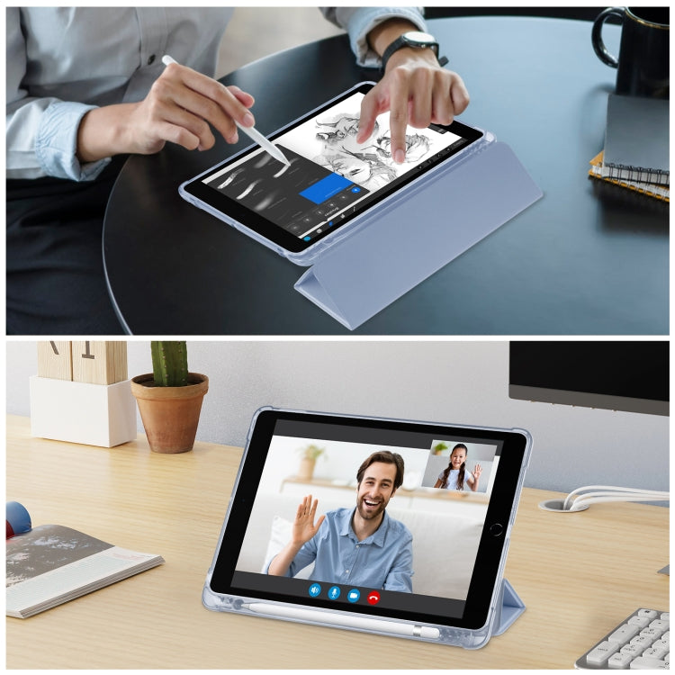 For iPad 10.2 2021 / 2020 / 2019 Tri-fold Holder TPU Cover Frosted Leather Smart Tablet Case withh Pen Slot(Purple)