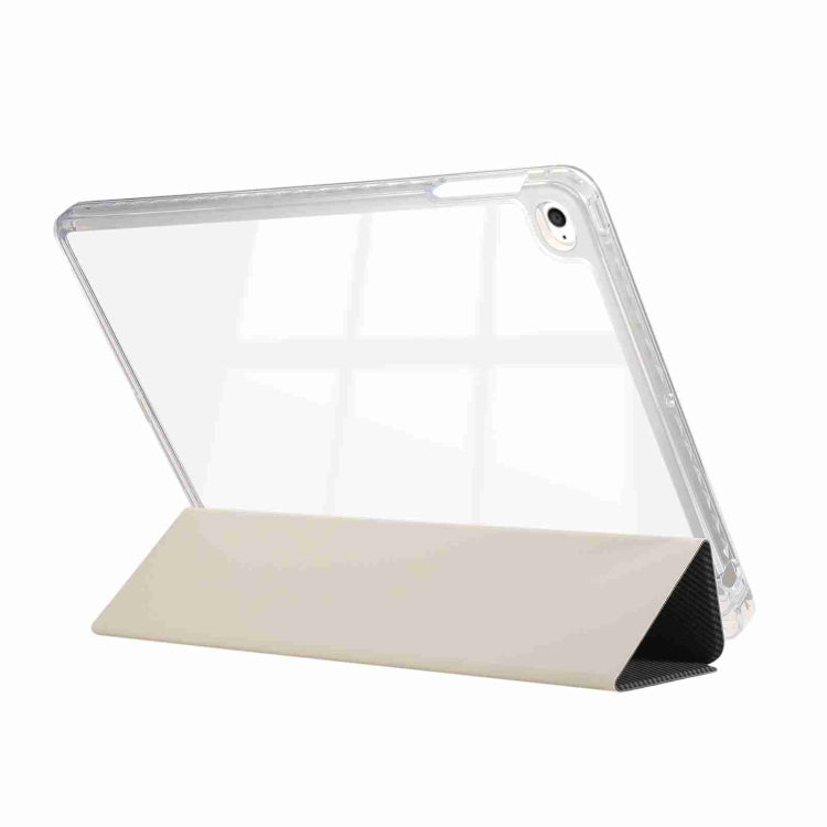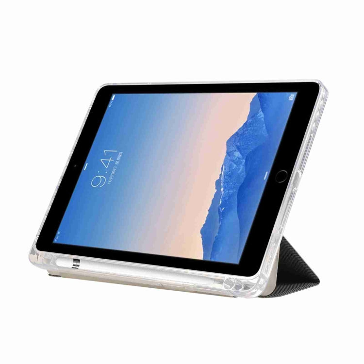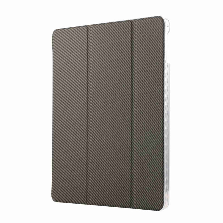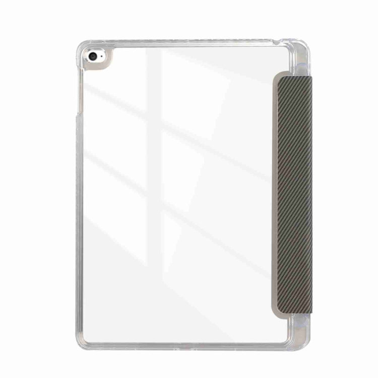 For iPad Air / Air 2 / 9.7 2017 / 2018 Carbon Fiber Clear Acrylic 3-Fold Leather Tablet Case(Grey)