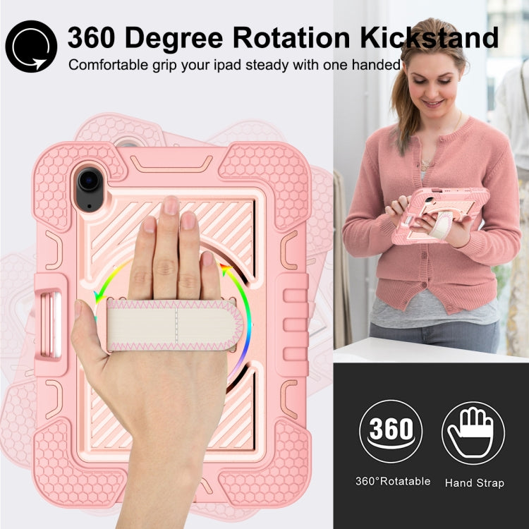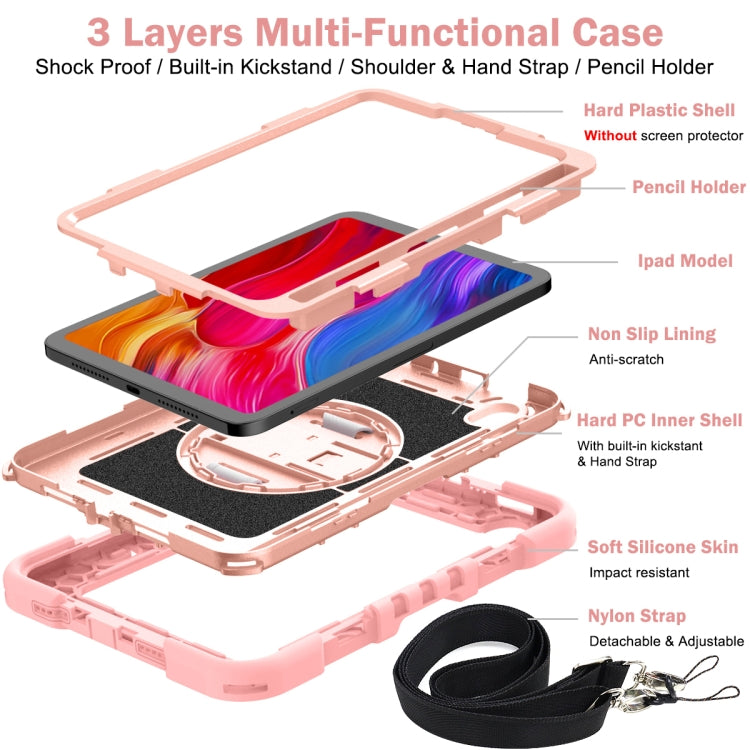 For iPad mini 2024 / mini 6 360 Degree Rotation Contrast Color Shockproof Silicone + PC Tablet Case with Holder & Hand Grip Strap & Shoulder Strap(Rose Gold)