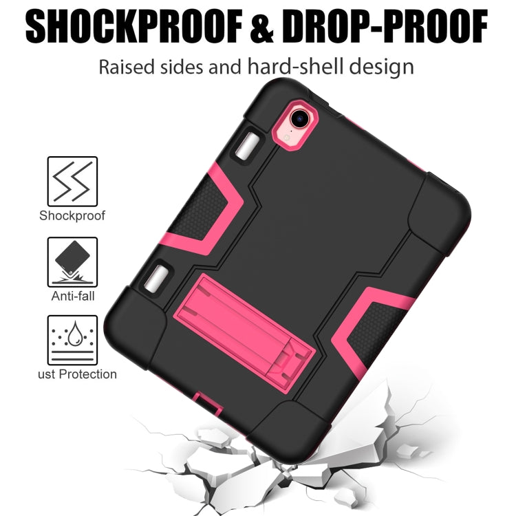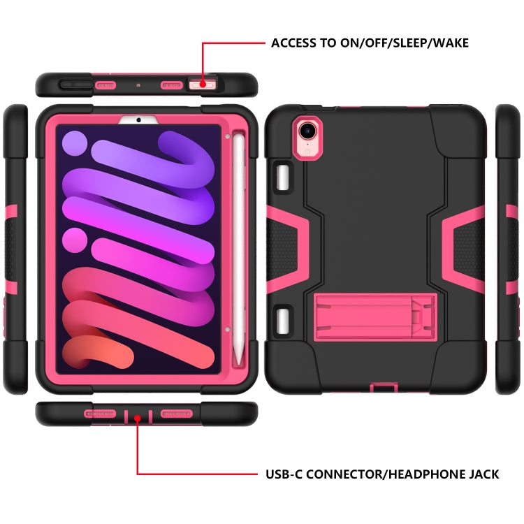 For iPad mini 2024 / mini 6 Contrast Color Robot Shockproof Silicone + PC Protective Tablet Case with Holder & Pen Slot(Black Rose Red)