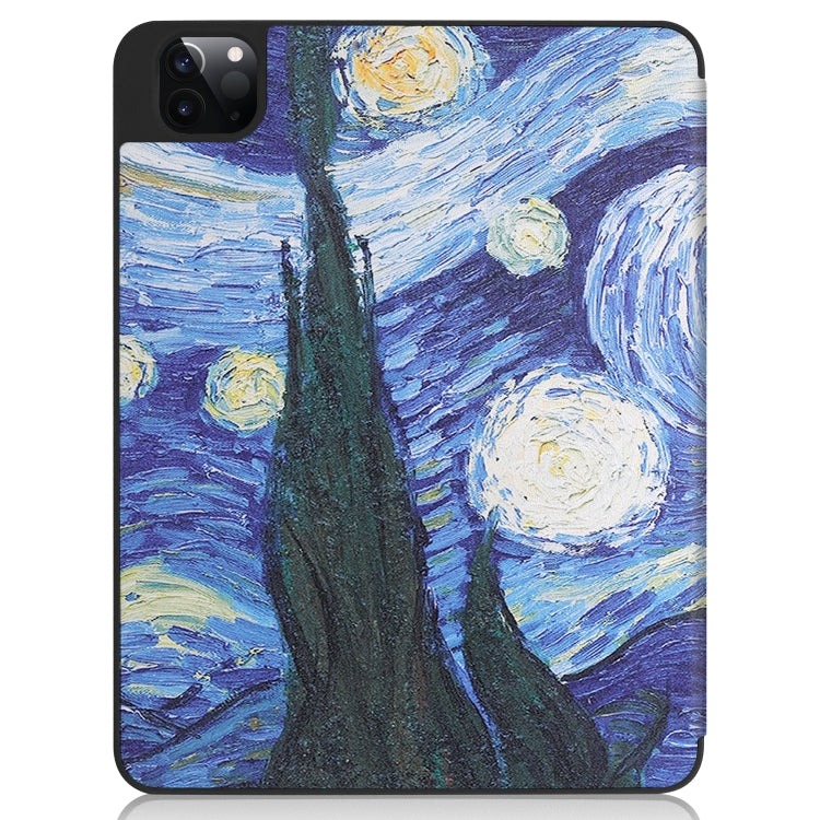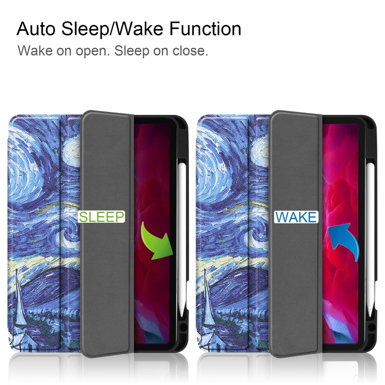 For iPad Pro 11 2022 / 2021 Colored Drawing Horizontal Flip TPU + PU Leather Tablet Case with Three-folding Holder & Sleep / Wake-up Function & Pen Slot(Starry Sky)