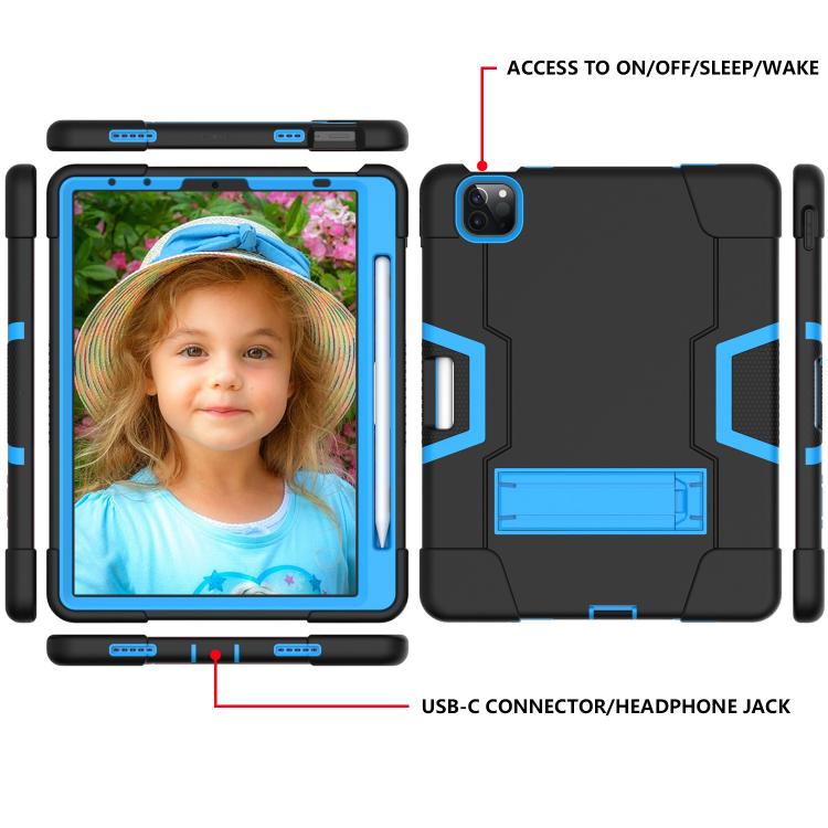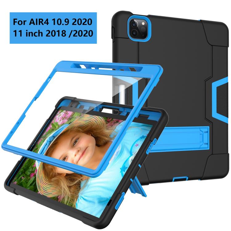 For iPad Pro 11 Contrast Color Silicone + PC Combination Case with Holder(Black + Blue)