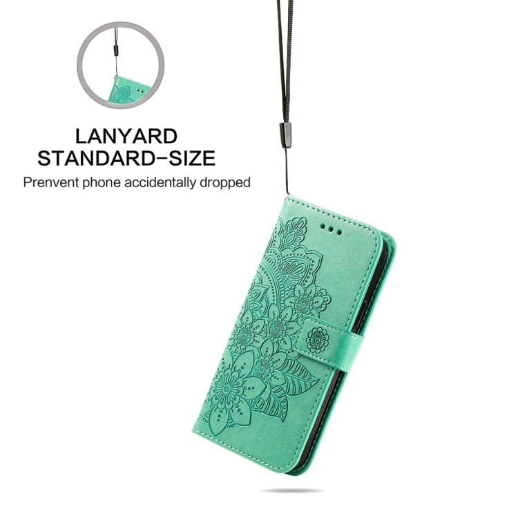For iPhone 16e Seven-petal Flowers Embossing Leather Phone Case(Green)