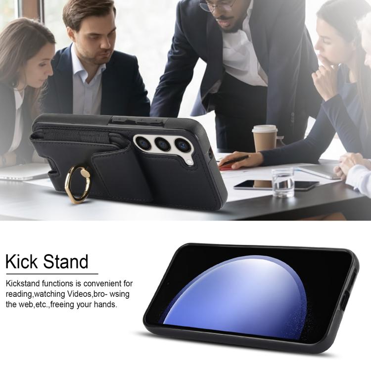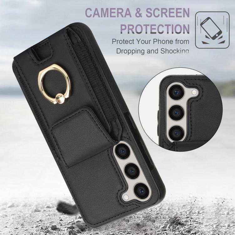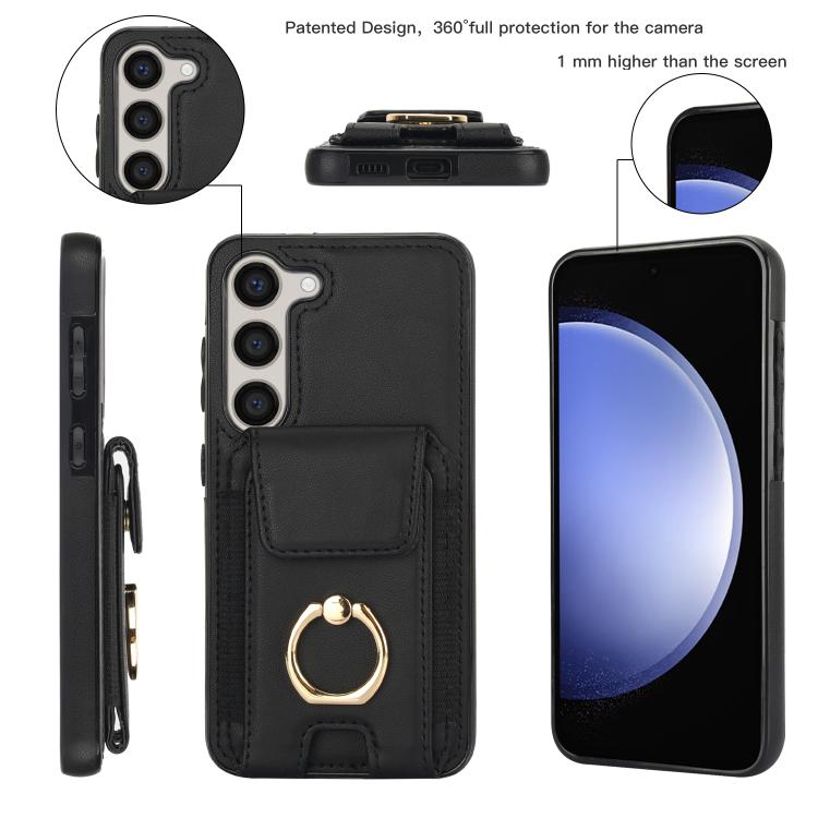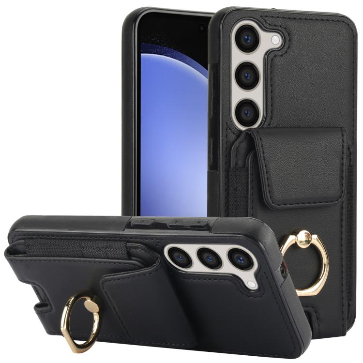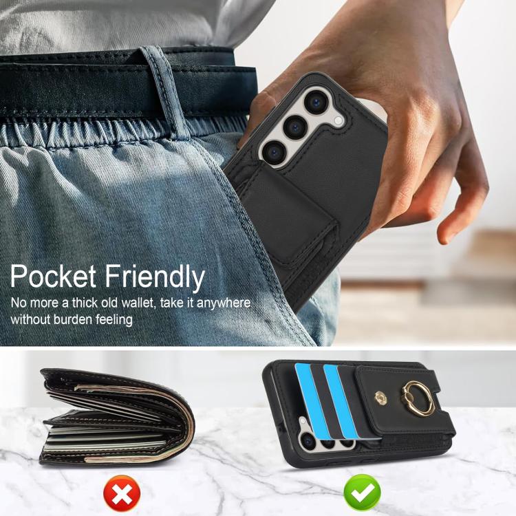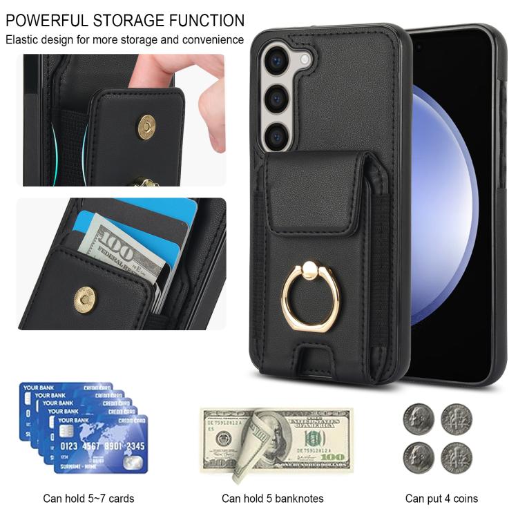 For Samsung Galaxy S25+ 5G Elastic Card Bag Ring Holder Phone Case(Black)