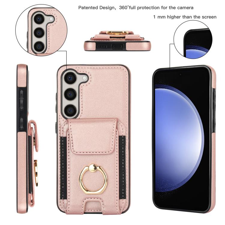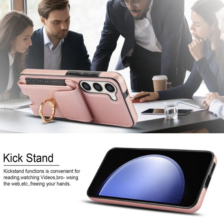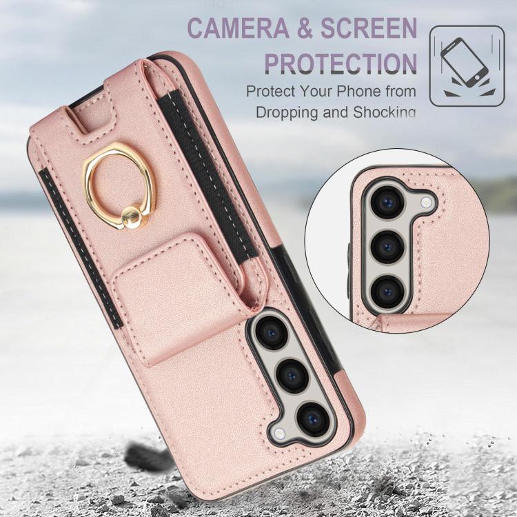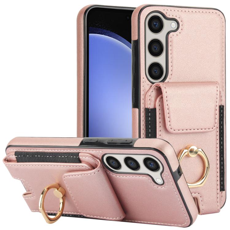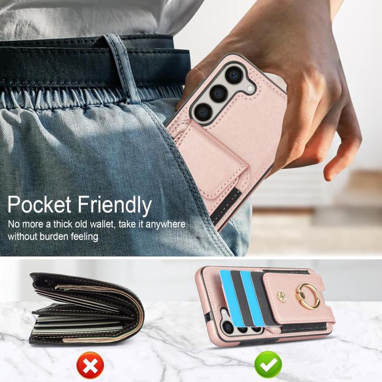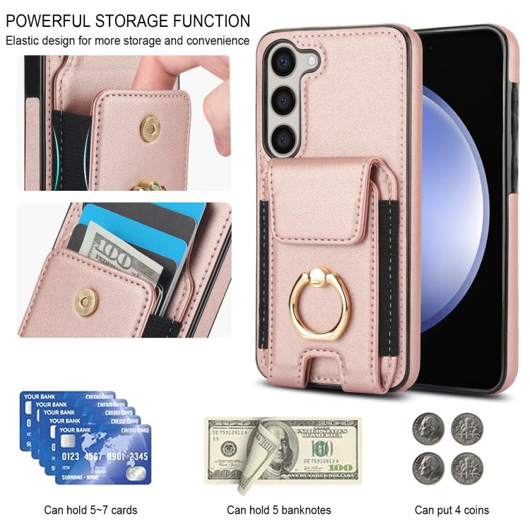 For Samsung Galaxy S25+ 5G Elastic Card Bag Ring Holder Phone Case(Rose Gold)
