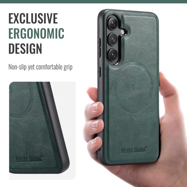For Samsung Galaxy S25+ 5G Fierre Shann FS-027 Cowhide Texture MagSafe Magnetic Phone Case(Green)
