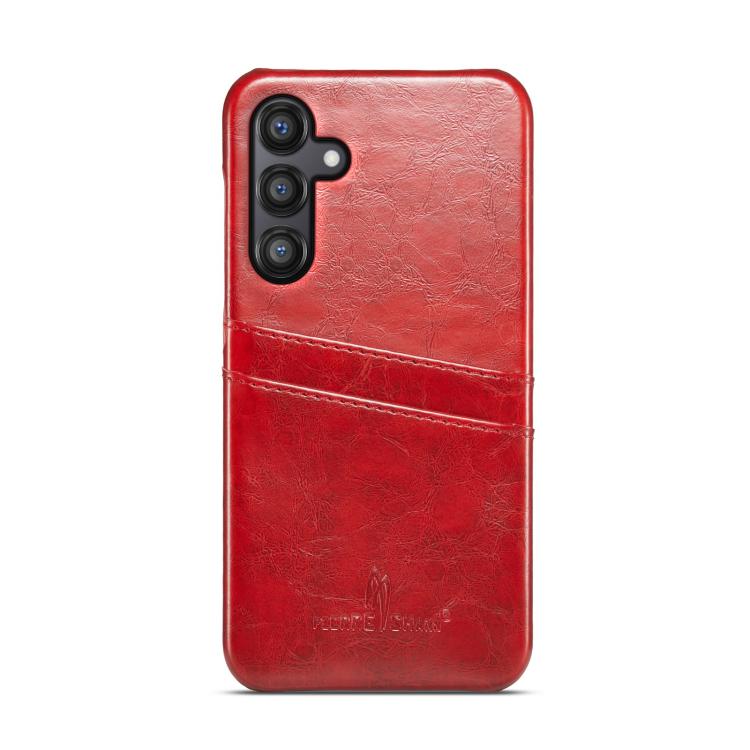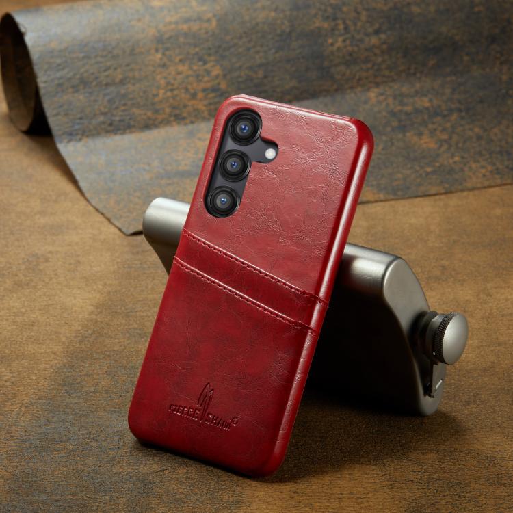 For Samsung Galaxy S25+ 5G Fierre Shann Retro Oil Wax Texture Card Slots PU Leather Phone Case(Red)