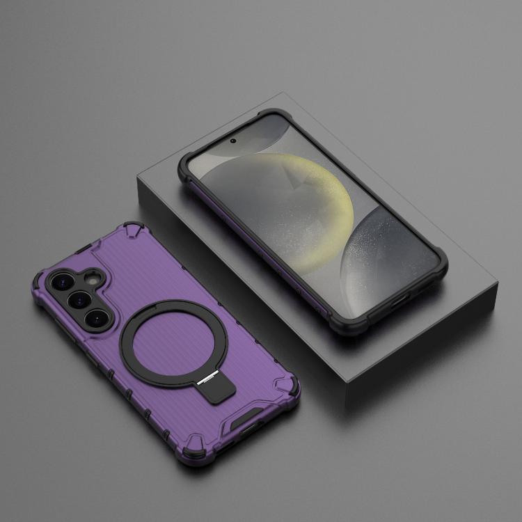 For Samsung Galaxy S25+ 5G Grating 360 Degree Rotating Holder Shockproof Phone Case(Purple)
