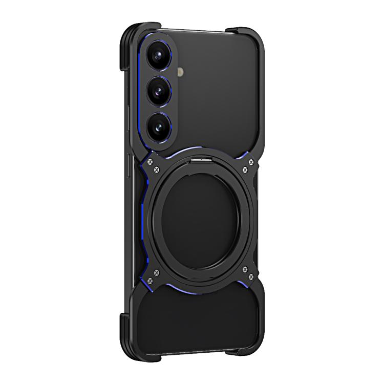 For Samsung Galaxy S25+ 5G Mechanical Arm Borderless MagSafe Holder Metal Phone Case(Black Blue)