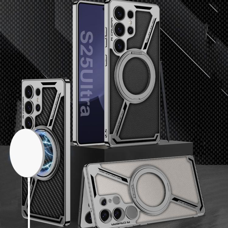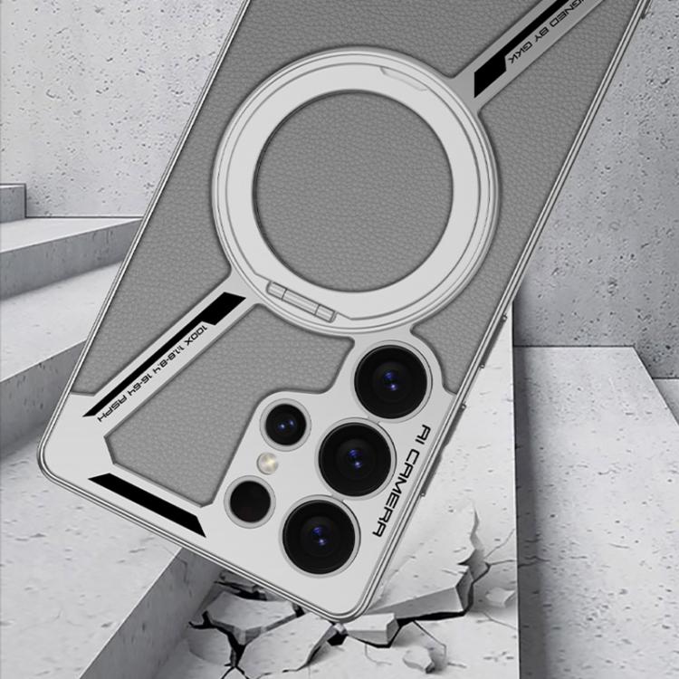 For Samsung Galaxy S25 Ultra 5G GKK Electroplating Leather Z-Shape Disassemble MagSafe Phone Case, Not Included Pen(Titanium Gray)