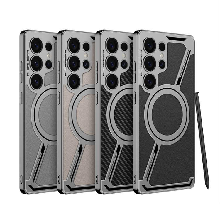 For Samsung Galaxy S25 Ultra 5G GKK Electroplating Leather Z-Shape MagSafe Phone Case, Not Included Pen(Titanium Gray)
