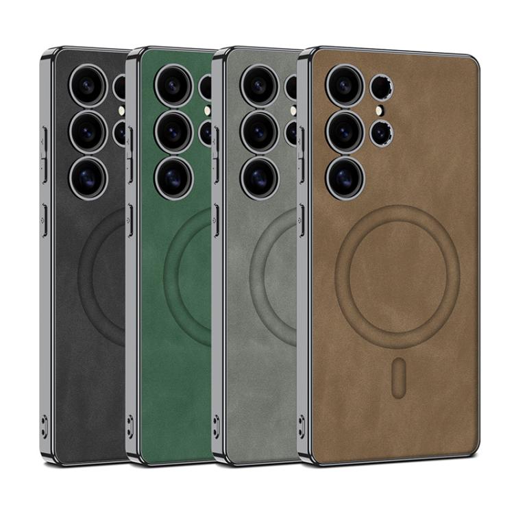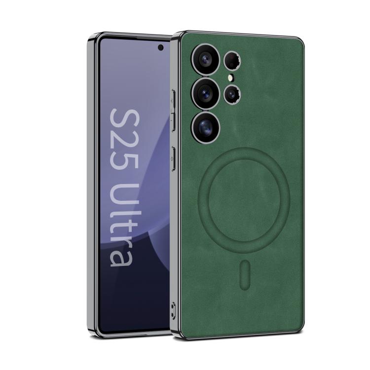 For Samsung Galaxy S25 Ultra 5G GKK Plating Leather Built-in MagSafe Frosted Phone Case(Green)