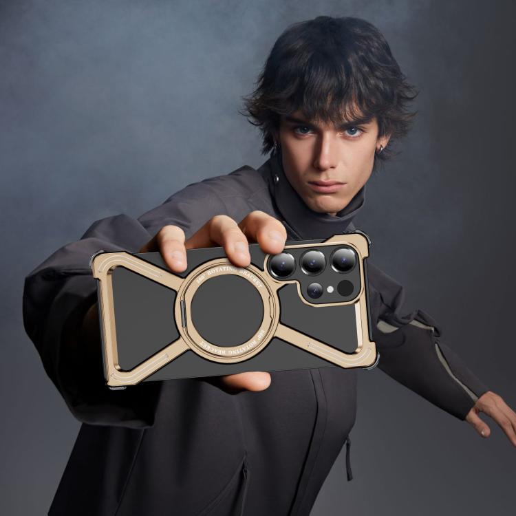 For Samsung Galaxy S25 Ultra 5G Titanium Alloy MagSafe Magnetic Airbag Shockproof Phone Case(Desert Gold)