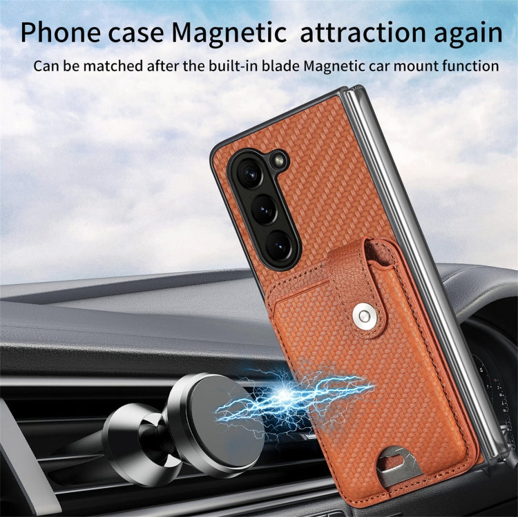 For Samsung Galaxy Z Fold6 5G Card Wallet Kickstand Back Phone Case with Tool Knife(Brown)