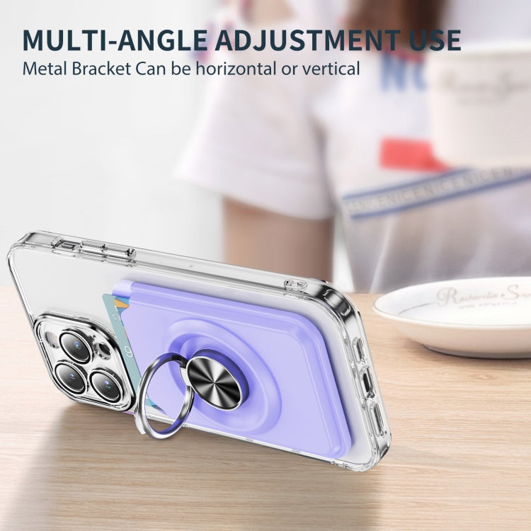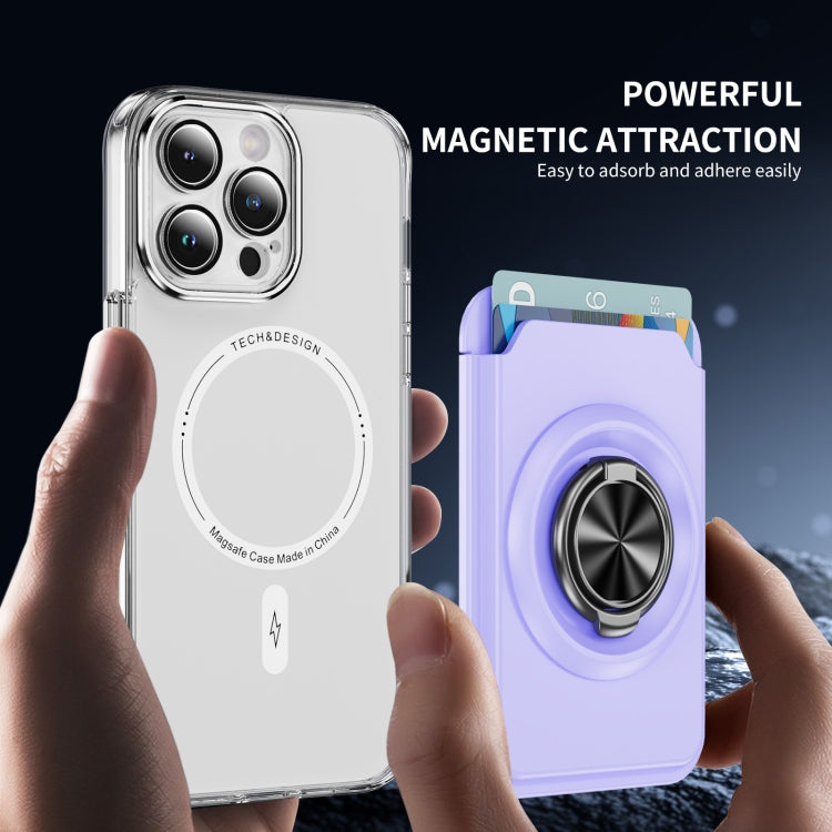 Skin Feel PC Magnetic Card Bag with 360-degree Rotating Holder(Light Purple)