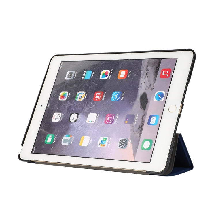 3-folding Skin Texture Horizontal Flip TPU + PU Leather Case with Holder For iPad 9.7 (2018) / 9.7 (2017) / air / air2(Navy Blue)