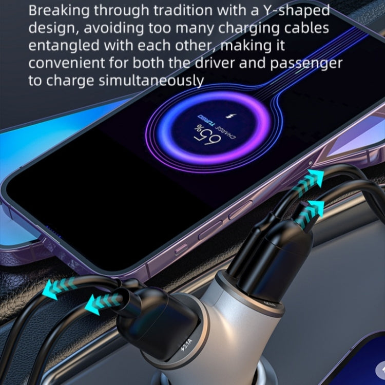 A2 2 USB + 2 Type-C Phone Fast Charging Power Adapter 78W Y-Shaped Car Charger(Black)