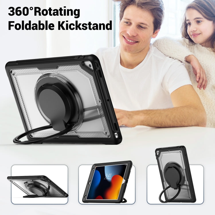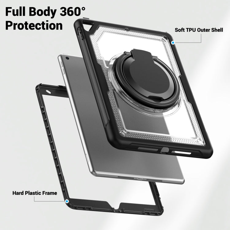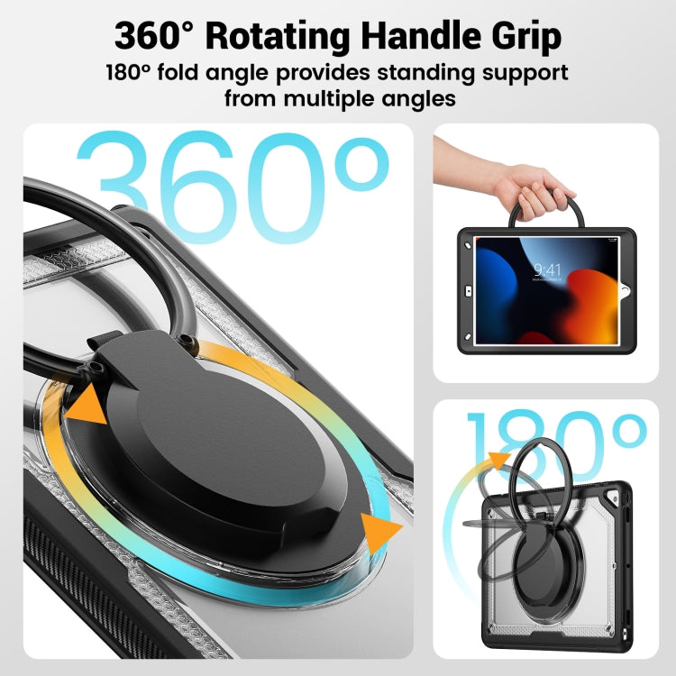 For iPad 10.2 2021 / 2020 / 10.5 2019 Honeycomb Hybrid Tablet Case with Handle Holder & Strap(Transparent)