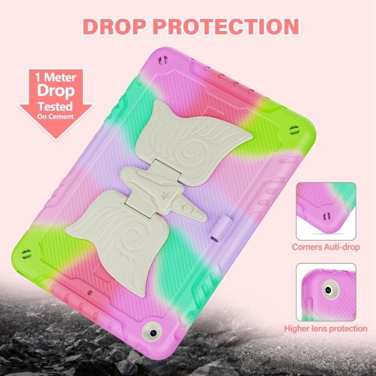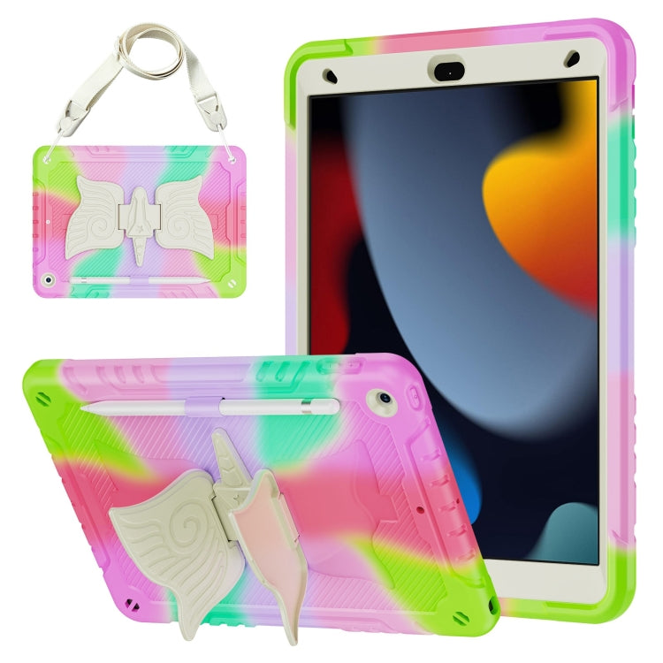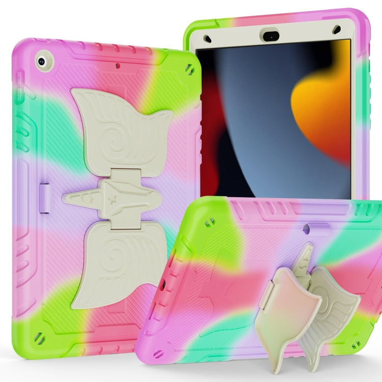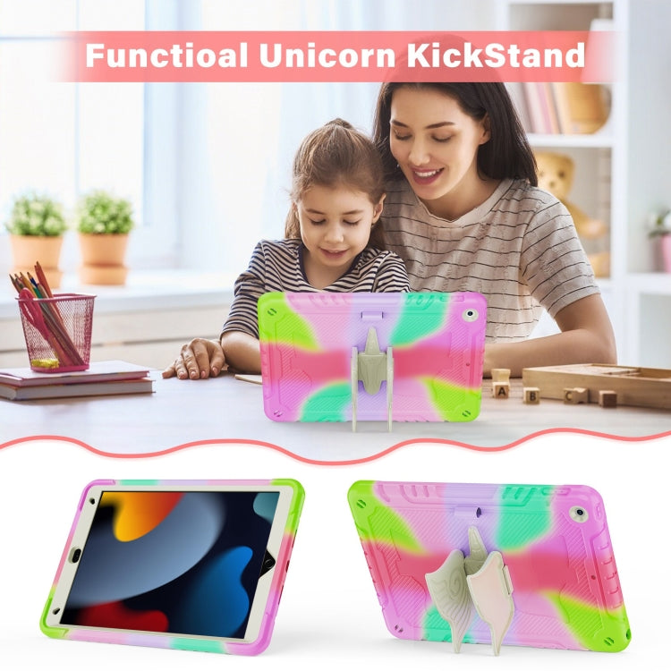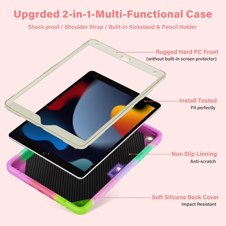 For iPad 10.2 2021/2020/2019 Kickstand PC Hybrid Silicone Tablet Case(Colorful Rose Red)