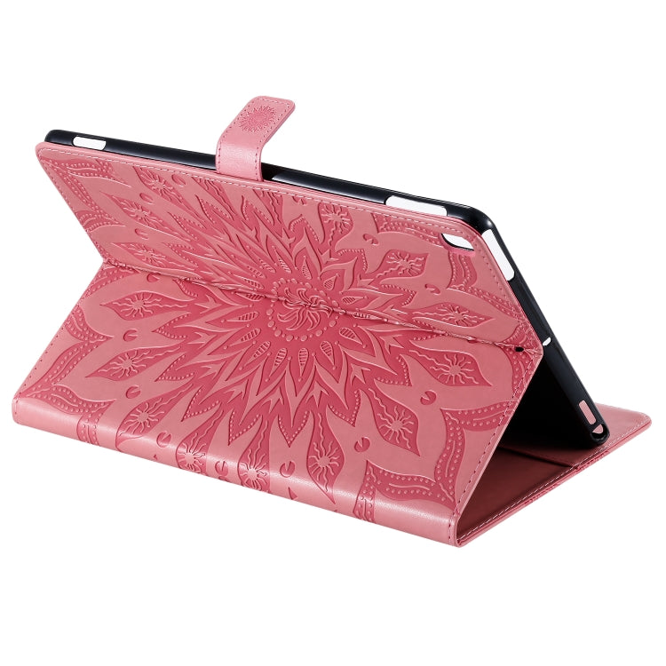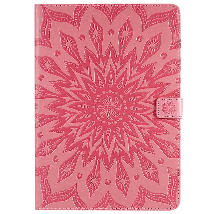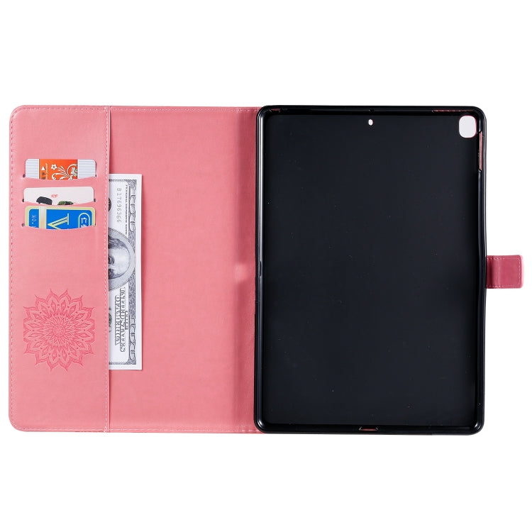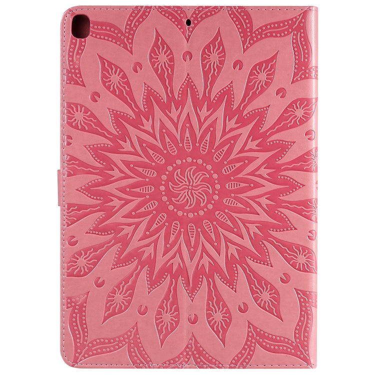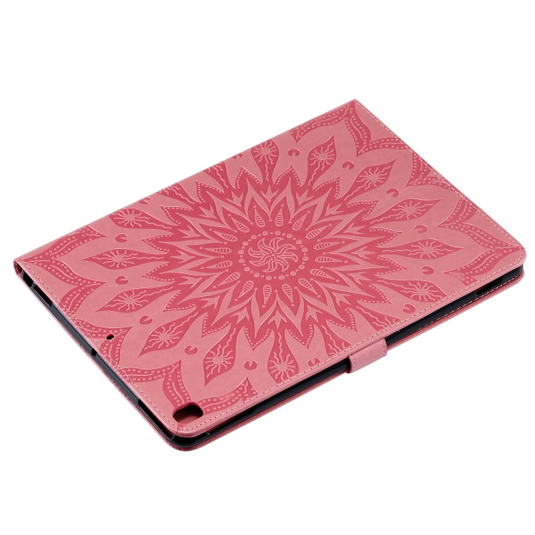 For iPad 10.2 / Pro 10.5 / Air 2019 Pressed Printing Sun Flower Pattern Horizontal Flip Leather Case with Holder & Card Slots & Wallet(Pink)