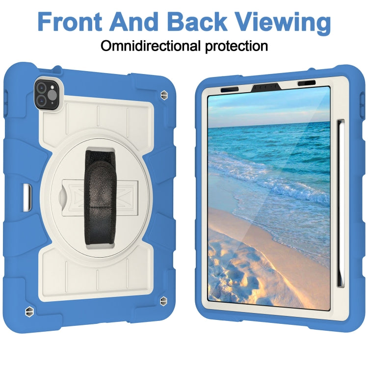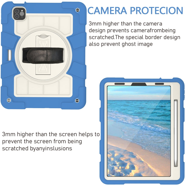 For iPad Air 2020 / 2022 10.9 Silicone Hybrid PC Shockproof Tablet Case with Shoulder Strap(Azure Blue)
