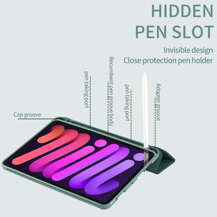 For iPad mini 6 / mini 2024 Tri-Fold Holder Leather Smart Tablet Case(Light Green)