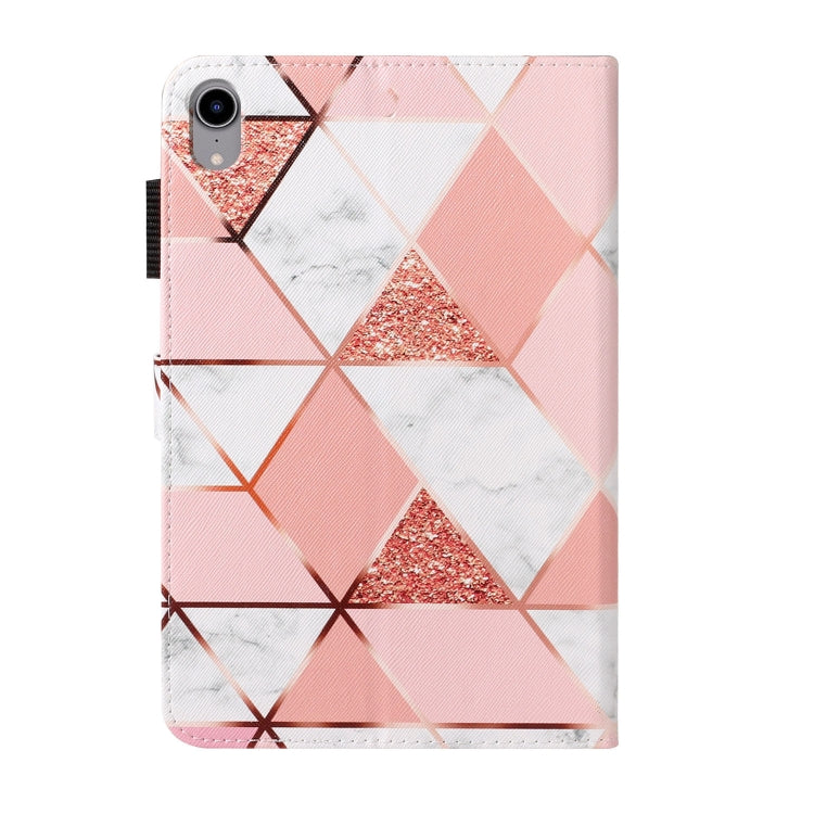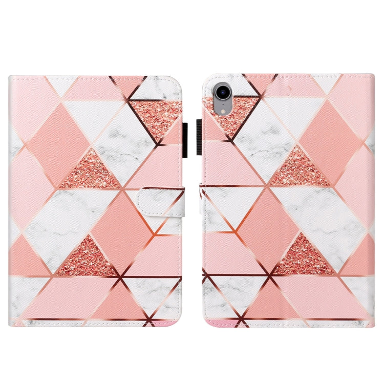 For iPad mini 2024 / mini 6 Cross Texture Painted Smart Leather Tablet Case(Pink Marble)