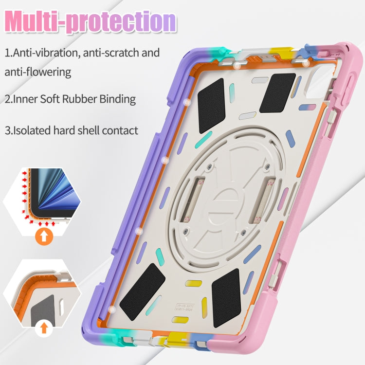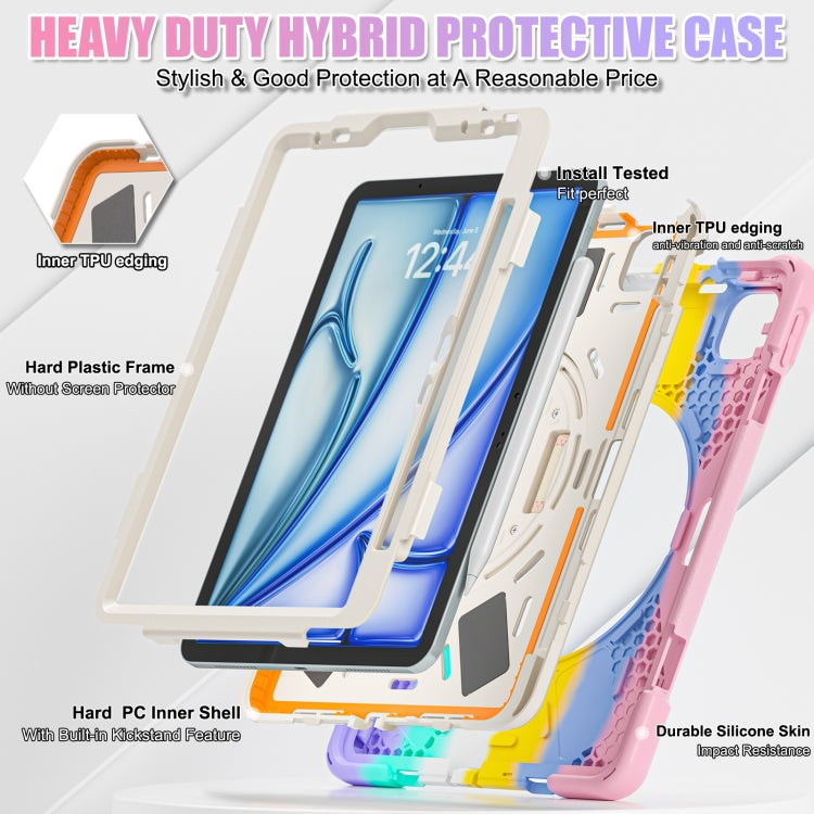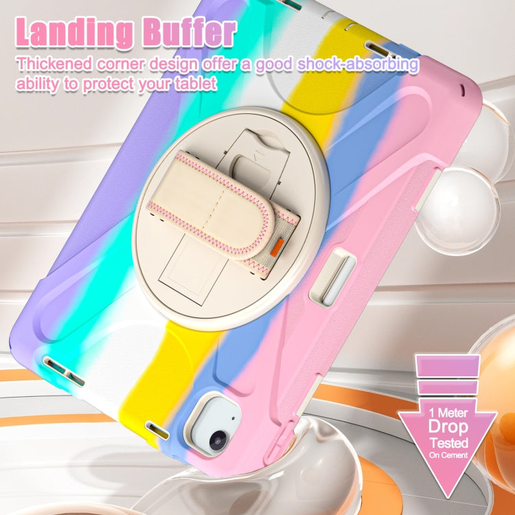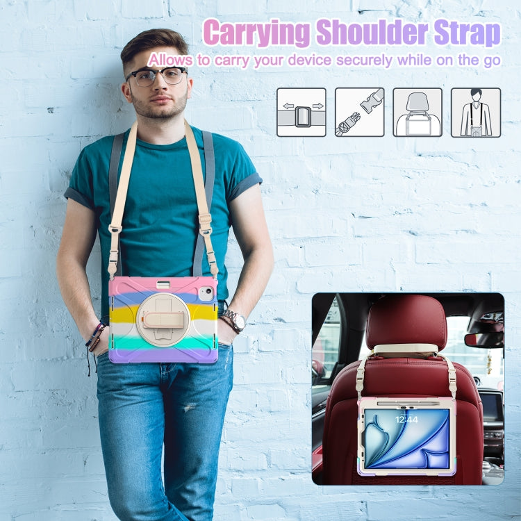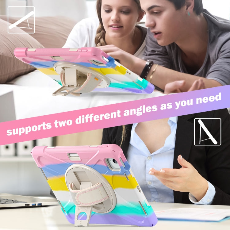 For iPad Air 11 2024 / Air 5 10.9 2022 / Air 4 10.9 2020 / Pro 11 2022 /2021 / 2018 / 2020 Silicone + PC Protective Tablet Case with Holder & Shoulder Strap(Colorful Pink)