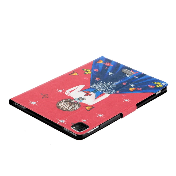 For iPad Pro 11 inch 2020 Painted Left and Right Flat Leather Tablet Case with Sleep Function & Card Slot & Buckle Anti-skid Strip and Bracket(Back Girl)