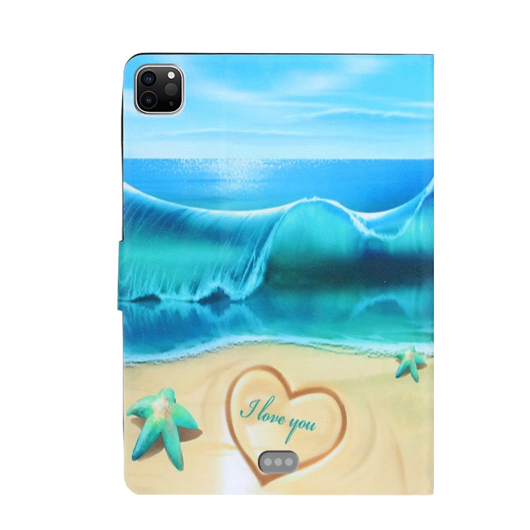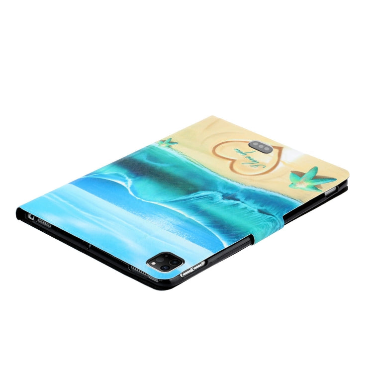 For iPad Pro 11 inch 2020 Painted Left and Right Flat Leather Tablet Case with Sleep Function & Card Slot & Buckle Anti-skid Strip and Bracket(Blue Beach)