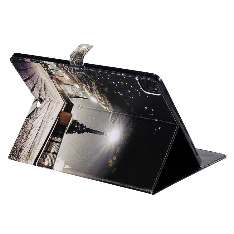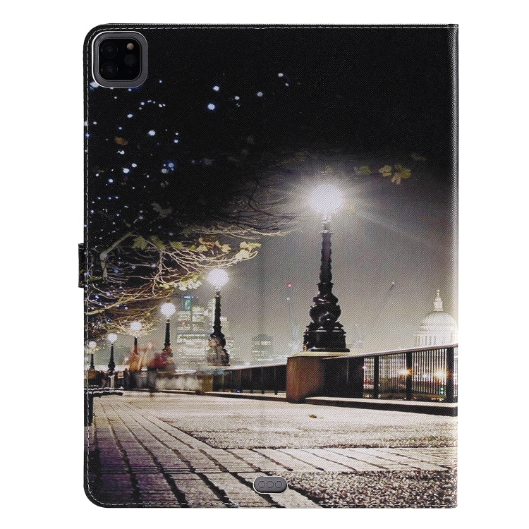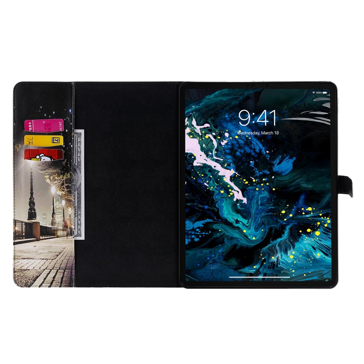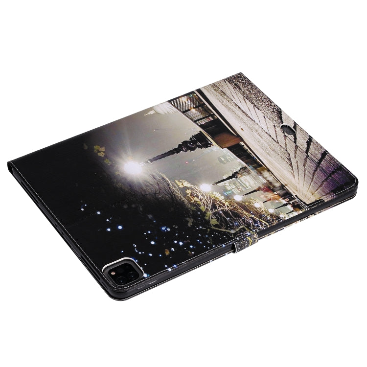 For iPad Pro 12.9 (2020) Colored Drawing Horizontal Flip Leather Tablet Case with Holder & Card Slot & Wallet(Cityscape)