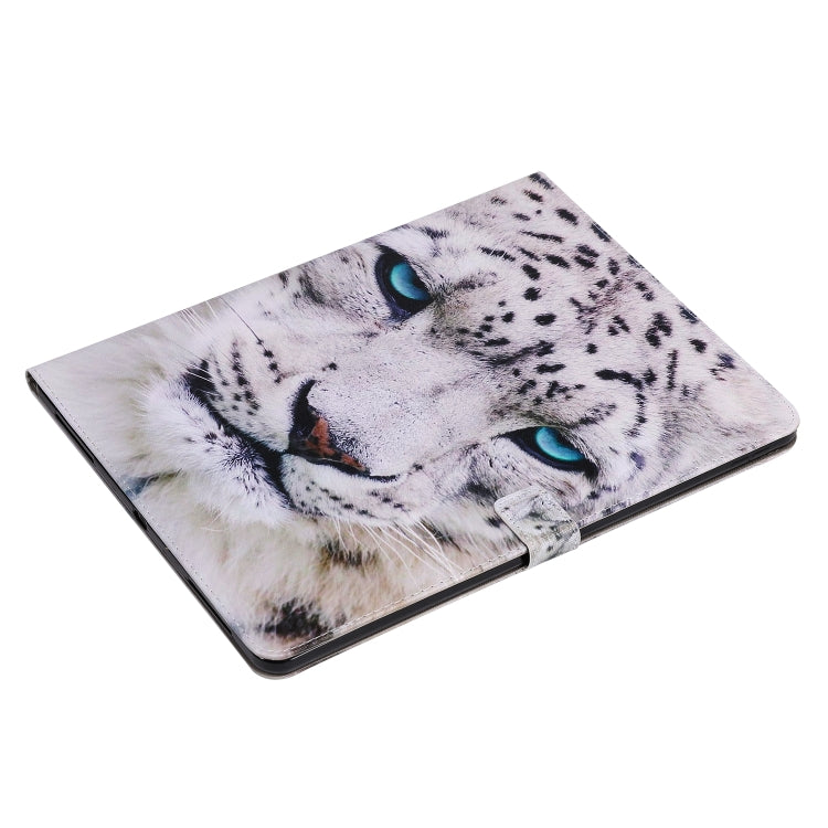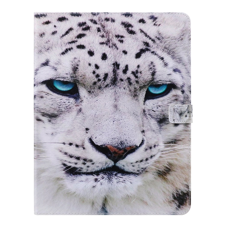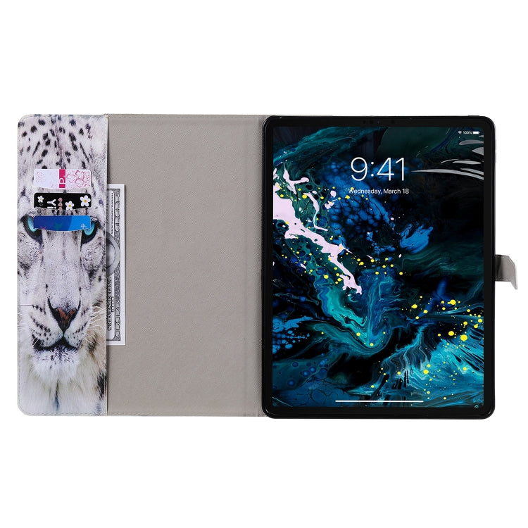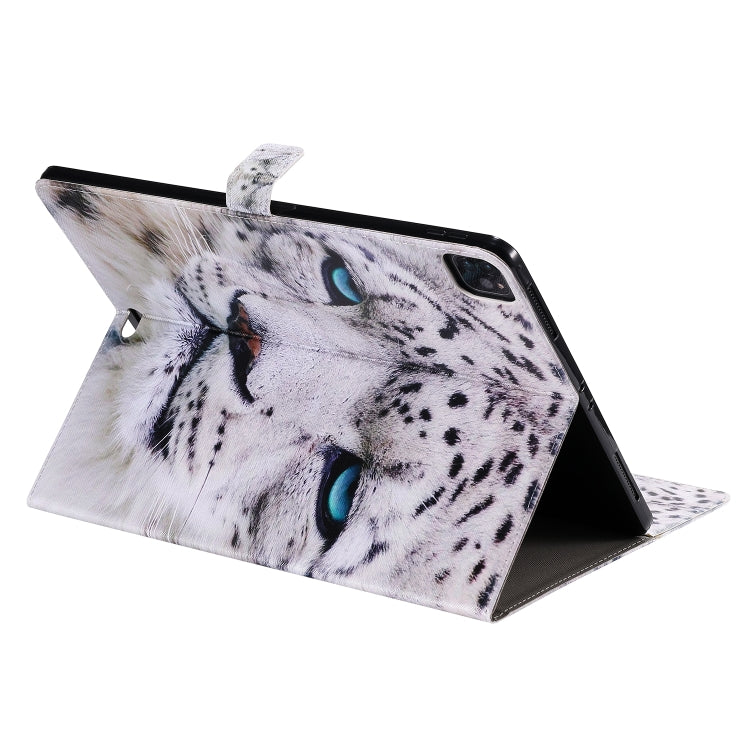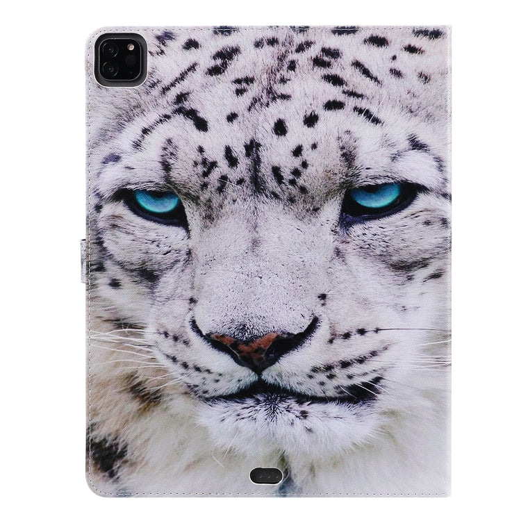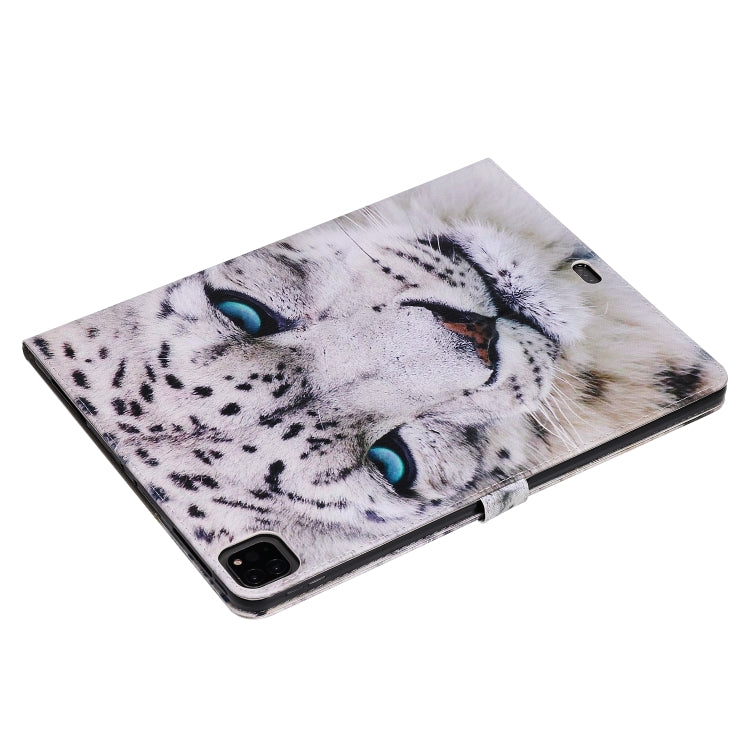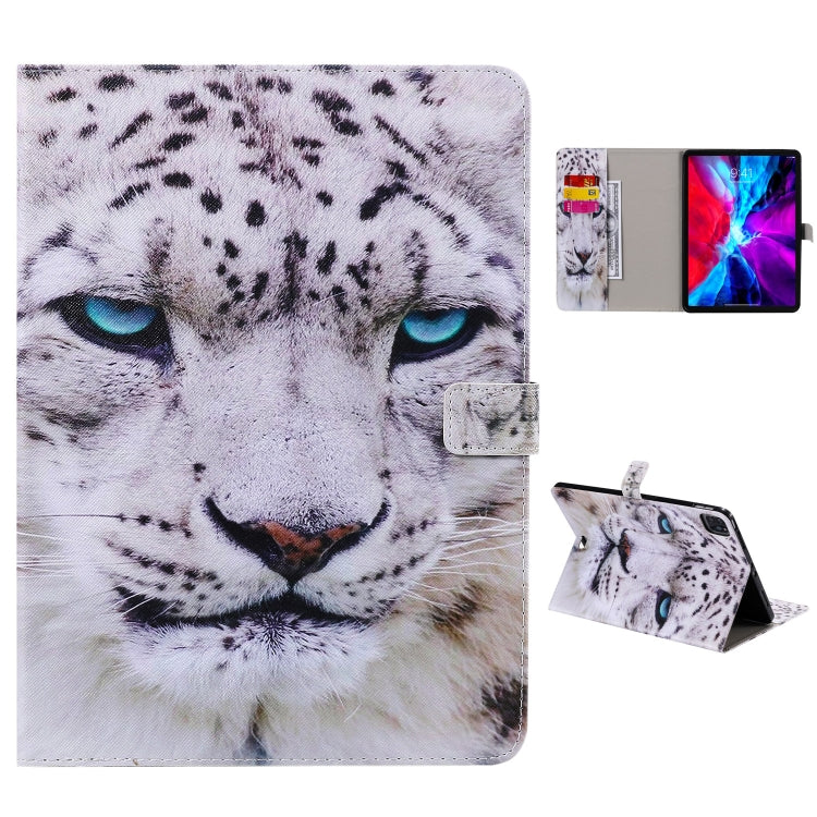 For iPad Pro 12.9 (2020) Colored Drawing Horizontal Flip Leather Tablet Case with Holder & Card Slot & Wallet(White Leopard)