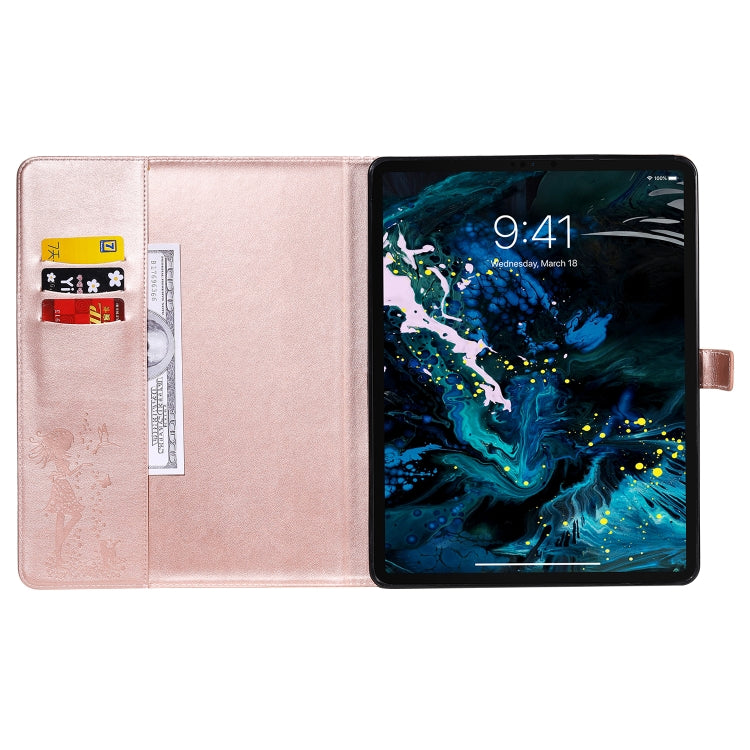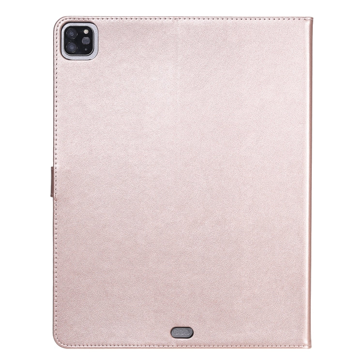 For iPad Pro 12.9 (2020) Pressed Printing Woman and Cat Pattern Horizontal Flip Leather Tablet Case with Holder & Card Slots & Wallet(Rose Gold)