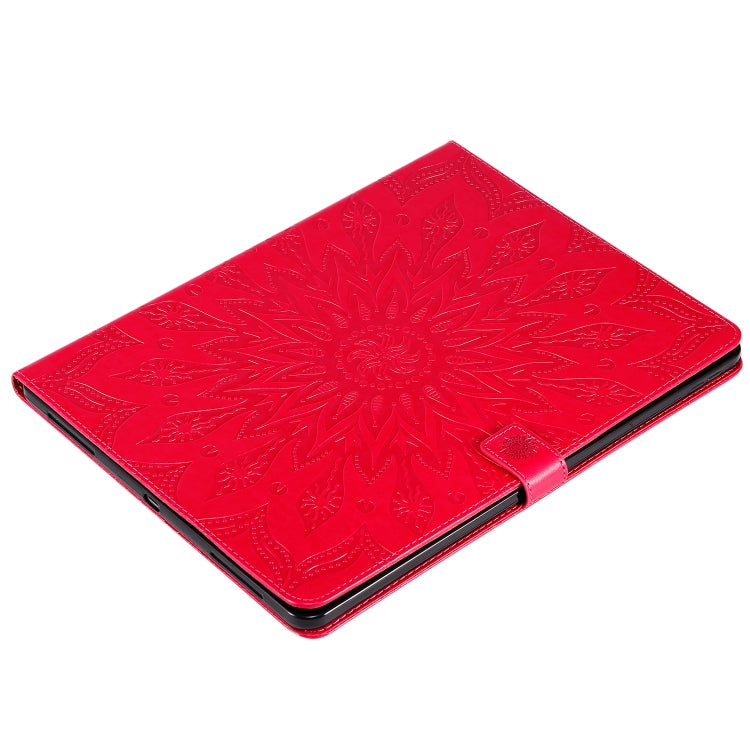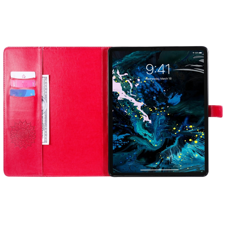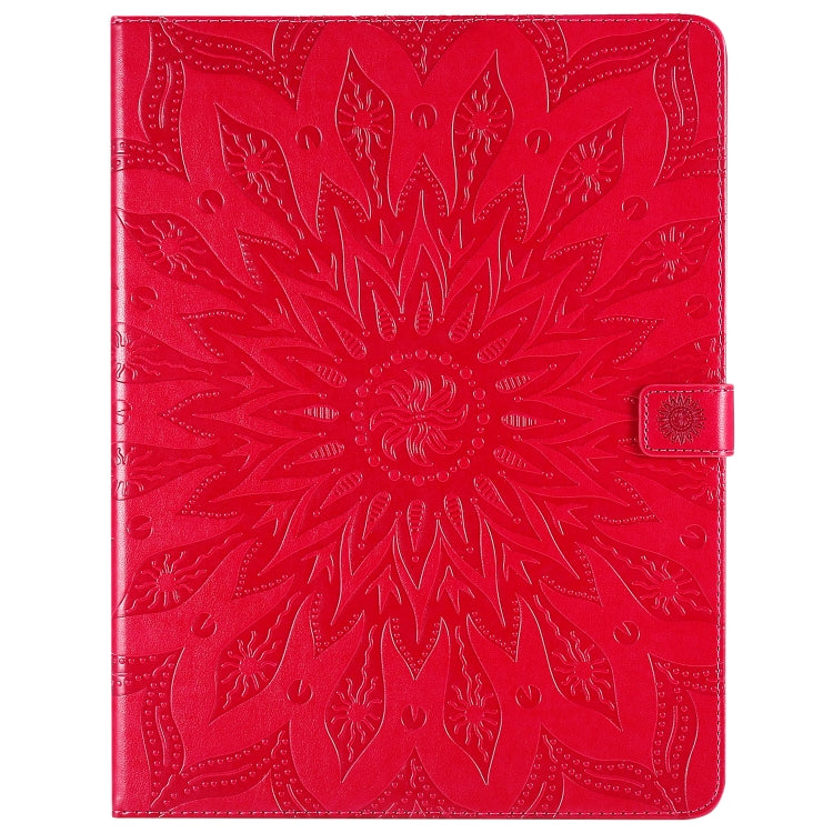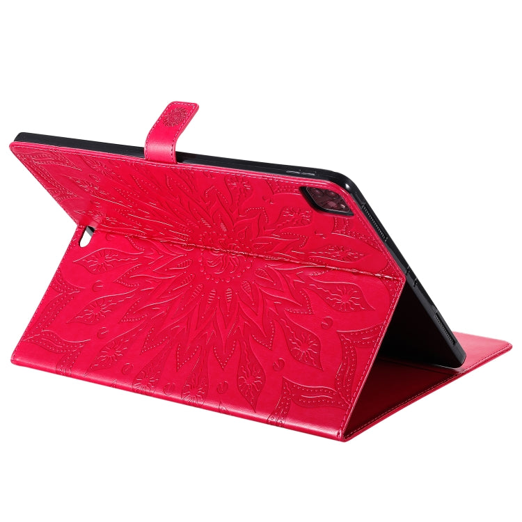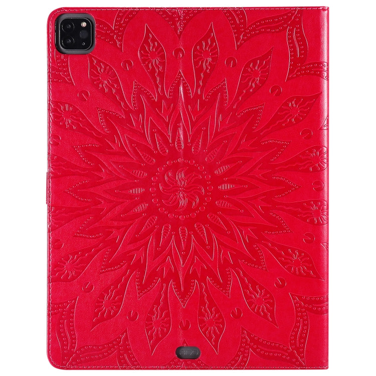 For iPad Pro 12.9 (2020) & Pro 12.9 (2018) Pressed Printing Sunflower Pattern Horizontal Flip PU Leather Tablet Case with Holder & Card Slots & Wallet(Red)